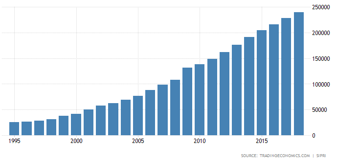 (55) “China Military Expenditure,” Trading Economics, “accessed July 15, 2020”. https://bit.ly/2F19UiZ.