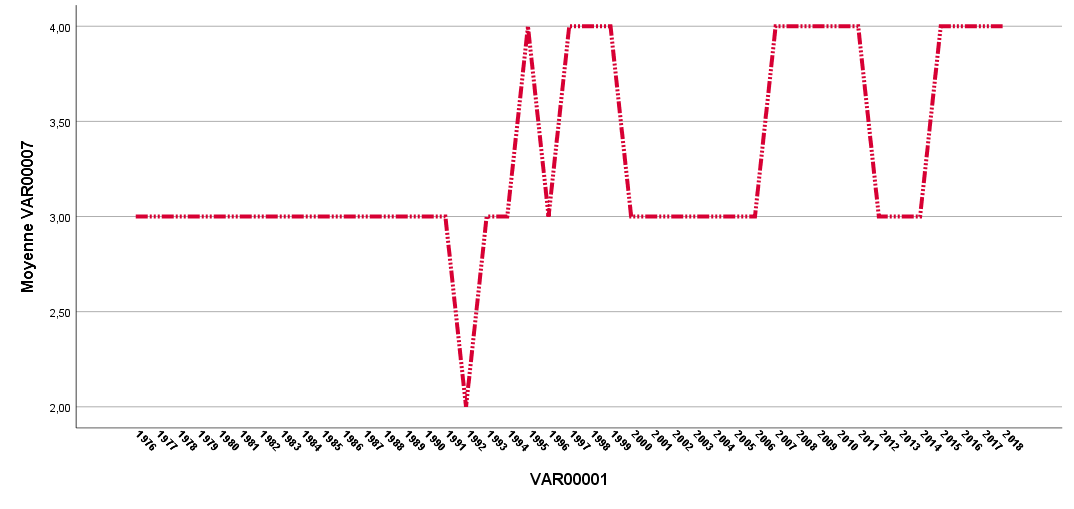 – مؤشر الرعب السياسي: ينطوي هذا المتغير على أشكال العنف الفيزيقي التي تستبد بالجسد خارج ما تنص عليه النصوص التشريعية. ويغطي مؤشر الرعب أفعال الاختطاف والاعتقال التعسفي وممارسة التعذيب، إضافة إلى أعمال الاغتيال السياسي وإزهاق الأرواح بدم بارد. وقد تم إعداد النسخة الأخيرة من قاعدة البيانات الخاصة بالعنف السياسي(28) ضد المواطنين من طرف ستة باحثين(29) ينتمون إلى جامعات غربية تحت إشراف مارك جيبني (Mark Gibney). ويتَّبع توزيع القيم الإحصائية للمؤشر سلمًا ترتيبيًّا يتراوح بين 1 و5؛ حيث تفيد القيمة الدنيا غياب وقائع مرتبطة بقمع الجسد وسلب الحياة، بينما تدل القيمة العليا على اللجوء المنظم من طرف السلطات إلى التنكيل بأجساد المعارضين وتصفيتهم عند الاقتضاء. وقد تم الاعتماد في دراسة الرعب السياسي على ما تنقله المنظمات الدولية من انتهاك لحقوق الانسان عبر العالم، خاصة “هيومن رايتس ووتش” و”منظمة العفو الدولية”، إضافة إلى التقارير التي تُعِدُّها وزارة الخارجية الأميركية كل سنة. وبصرف النظر عن الانتقادات التي يمكن توجيهها لهذا المؤشر من الناحية القياسية والإبستمولوجية، فإنه يوفر معطيات قيمة يمكن استعمالها في الدراسات العلمية.
