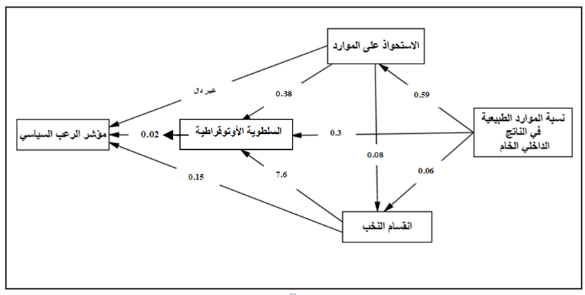 ويعتقد الأنثروبولوجي الماركسي، موريس كودليي (Maurice Godelier)، بأن العلاقات بين بني البشر لا يمكن فصلها عن علاقة الإنسان بالطبيعة(66)، كما أن الطريقة التي يحصل بها الائتلاف المهيمن على موارد الدولة يؤثر على المؤسسات السياسية وطبيعة القواعد القانونية التي تحكم الاجتماع السياسي(67). ويأخذ هذا المنطق دلالته الاجتماعية والسياسية في اللعبة القذرة التي تضطلع بها الموارد الطبيعية على مستوى تكثيف الرعب السياسي. وهو ما يعبِّر عنه النموذج الإحصائي للدراسة؛ حيث يندرج تأثير نسبة الموارد الطبيعية في نسق من العلاقات التي تؤدي في نهاية المطاف إلى استباحة الجسد في الأنظمة السياسية السلطوية: