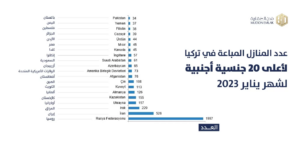 ويأتي العراقيون في مقدمة مشتري العقارات في تركيا، وفي إحصائية رسمية نشرتها هيئة الإحصاء التركية في نوفمبر/تشرين الثاني 2022، جاء العراقيون بالمركز الأول بعدد مشتري العقارات في البلاد خلال السنوات الثماني الماضية، بحصيلة وصلت إلى نحو 47 ألف عقار في مختلف المجالات السكنية والتجارية. وحافظ العراقيون على صدارة شراء المنازل في تركيا في الفترة 2015-2021 ليتراجعوا إلى المركز الثاني بعد الإيرانيين مطلع 2021، ثم للمركز الثالث، في 2022، بعد تصدر الروس لمشتري العقارات التركية(31). وواصل الروس احتلال المركز الأول في شراء العقارات مع مطلع العام 2023 وتلاهم الإيرانيون ثم العراقيون ثم الأوكرانيون.